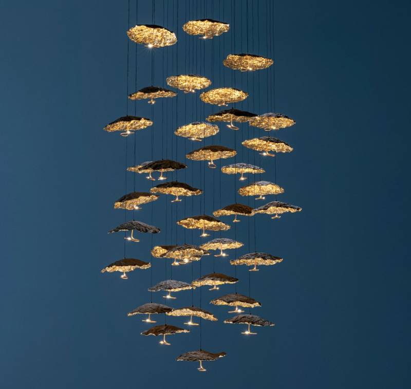 Les look de la suspension luminaire Gold Moon Chandelier et de la suspension luminaire Syphaspot Chandelier de la marque Catellani&Smith feront sensation dans une montée d'escalier ou une salle à manger.