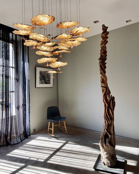 Enzo Cattelani, coiffeur de formation, se rappelle les dégâts des produits chimiques sur la santé et a toujours voulu éviter leur utilisation dans ses luminaires design italiens. Le laiton par exemple, n'est pas traité. Il va s'oxyder avec les années. Des lampes en constante évolution sur le plan esthétique.