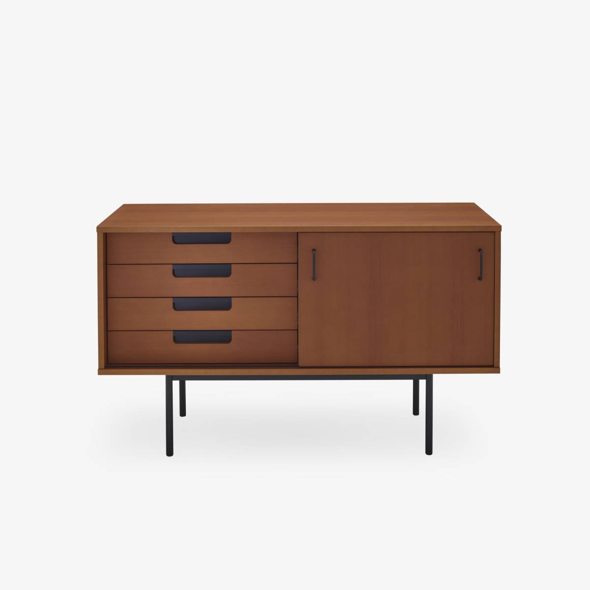 Nous retrouvons la célèbre chaise "Tonneau" qu'il dessine pour Steiner réajustée au niveau de la hauteur d'assise pour s'adapter aux morphologies actuelles. Il initie par ce modèle, la technique du contreplaqué plié dans l'industrie de l'ameublement français qu'il reproduit par la suite sur la chaise "Papyrus". La chaise existe également en version coque tapissée et bridge. La réédition de la chaise longue "Vallée-blanche" de 1963 respecte exactement le modèle original. La chaise-longue fait partie de la collection permanente du Centre Pompidou.