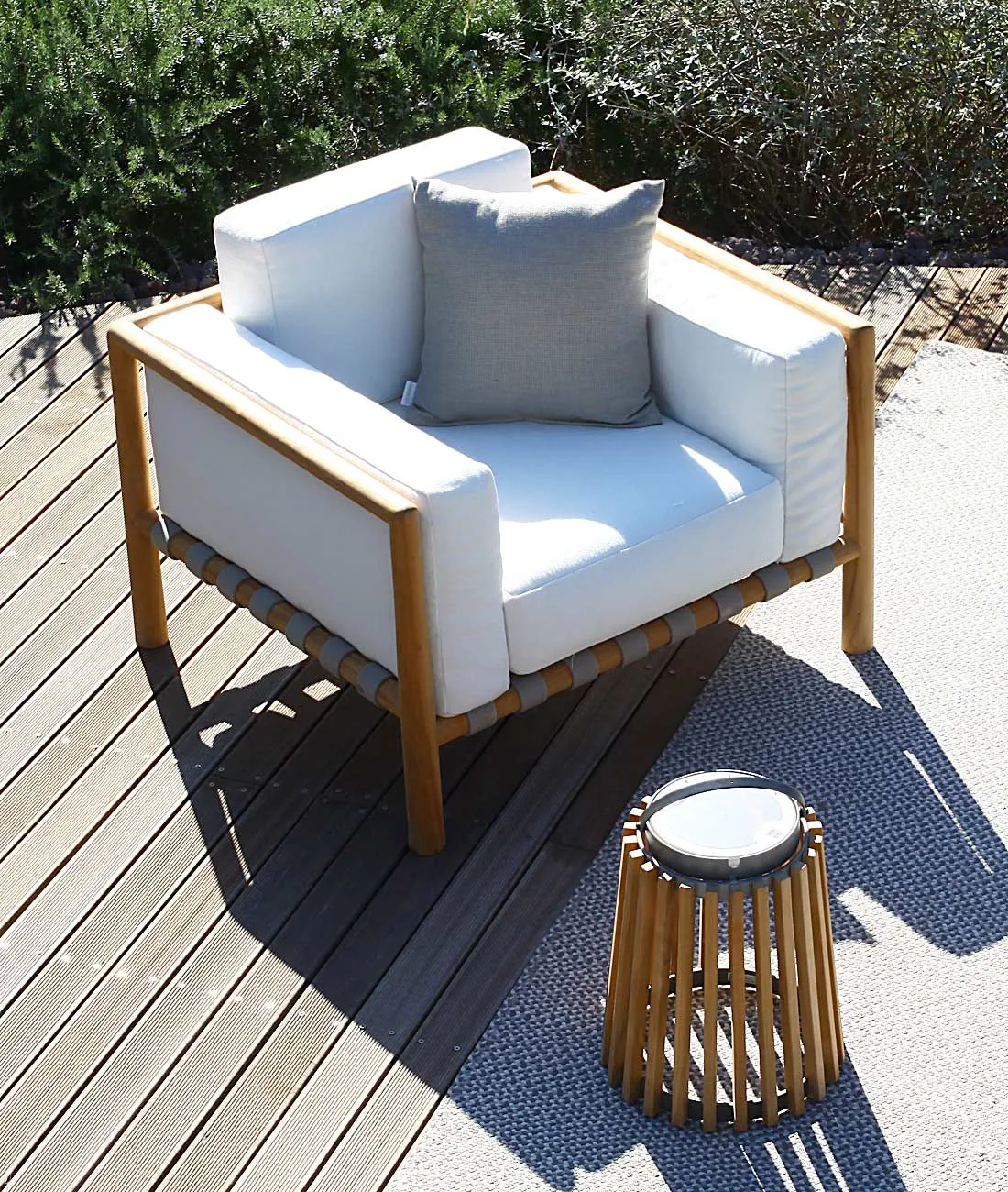 Prenez rendez-vous au Showroom443 de Nîmes près de Montpellier et trouvez le fauteuil en bois d'extérieur élégant pour une ambiance de jardin cosy.