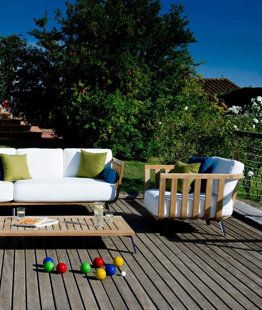 Vous êtes à a recherche d'un fauteuil d'extérieur en bois pour créer une décoration élégante et cosy, venez découvrir Showroom443 à Nîmes près de Montpellier et notre nouvelle marque de mobilier d'extérieur Unopiù.