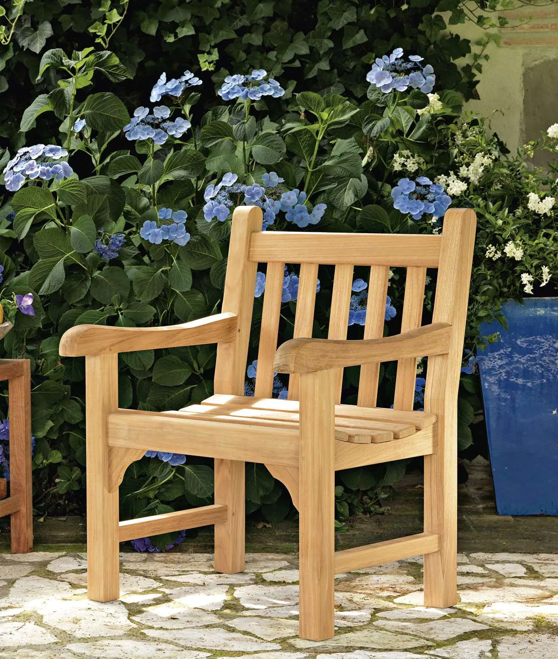 Le fauteuil d'extérieur tout bois CHELSEA en teck crée une atmosphère intemporelle et raffinée. Le style anglo-Saxon imprègne votre extérieur et invite à la convivialité.