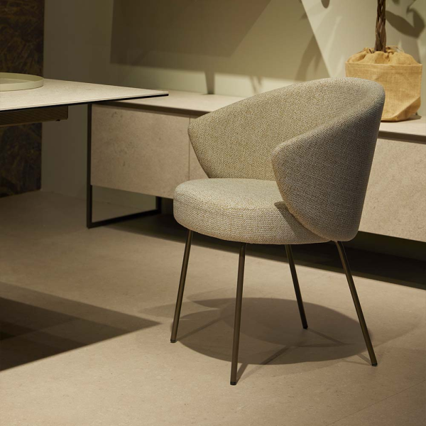 La chaise de salle à manger Gavi est enveloppante et confortable. Les pieds en métal sont disponibles dans 18 coloris différents en verison tubulaire et ovale.
