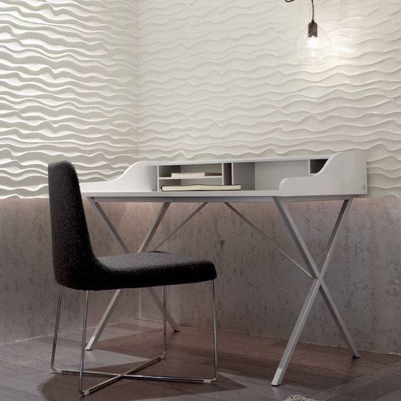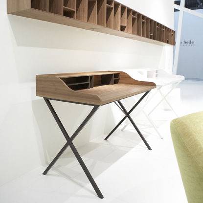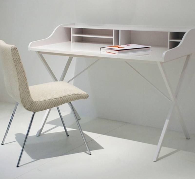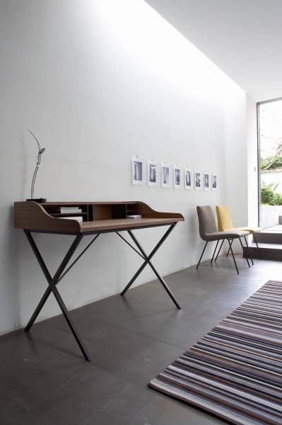 Dans la collection de bureau Ligne Roset, prenez également le temps de découvrir le bureau minimaliste URSULINE. Ses lignes gracieuses sont en opposition avec le bureau TANIS très masculin. Le bureau minimaliste URSULINE propose un plateau de travail avec un casier et une ceinture de rangement, associé à un piétement en croix en tube d’acier laqué epoxy. URSULINE se décline en laqué blanc satiné ou en placage noyer naturel.