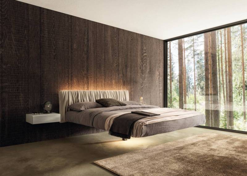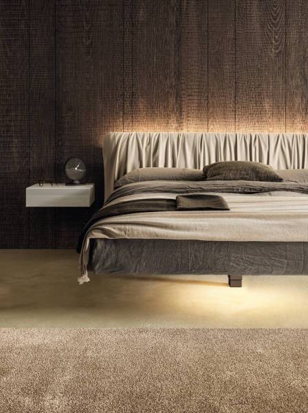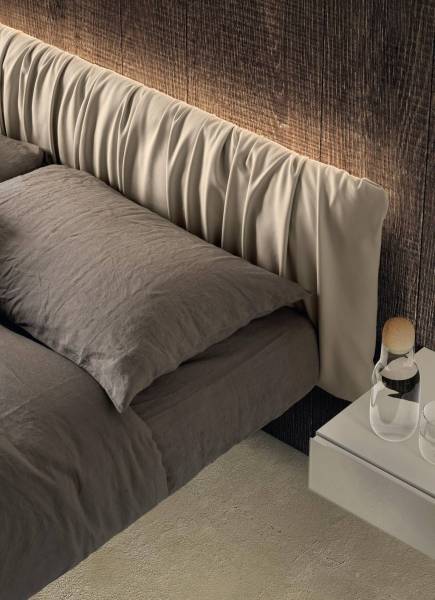 L’esthétique du lit est renforcée en l’associant avec une tête de lit assortie comme sur les photos de présentation de LAGO ou avec une tête de lit en dossier rembourré. Lit FLUTTUA WILDWOOD, Lit FLUTTUA REPLIS, Lit FLUTTUA SOFT.