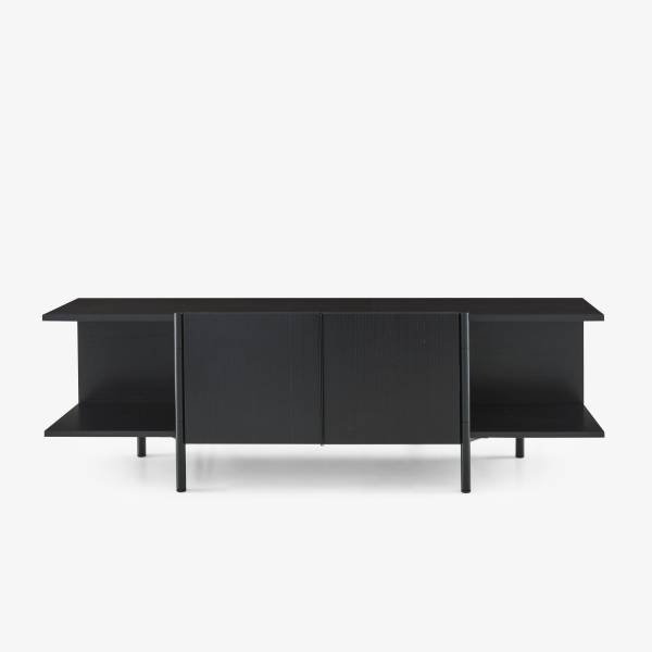 La marque Ligne roset propose une large collection de meuble TV noir à poser au sol, comme le meuble TV Dita ou Book&Look à composer selon vos besoins.