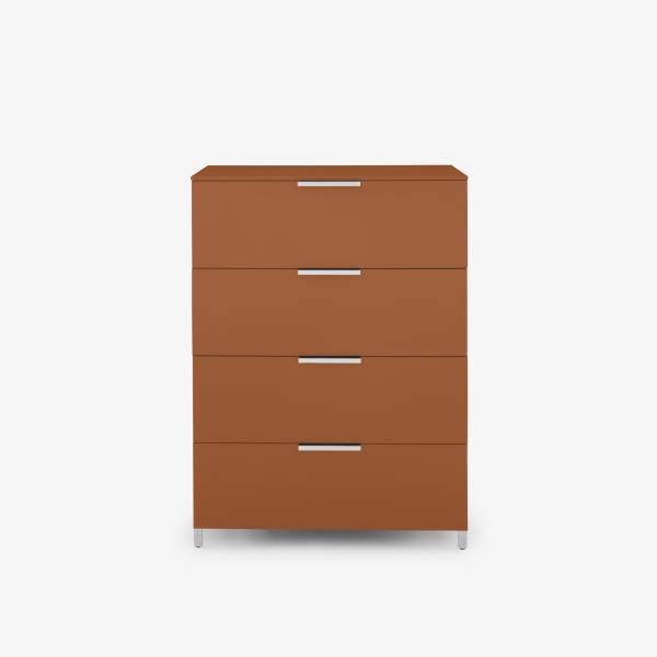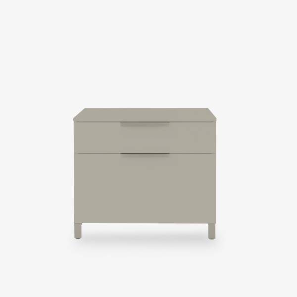 Les meubles design de la collection existe en version commode de 4 ou 6 tiroirs, toujours sur pieds pour plus de légèreté et en version chevet. Les poignée et les pieds sont également disponibles dans les 16 coloris de laque.
