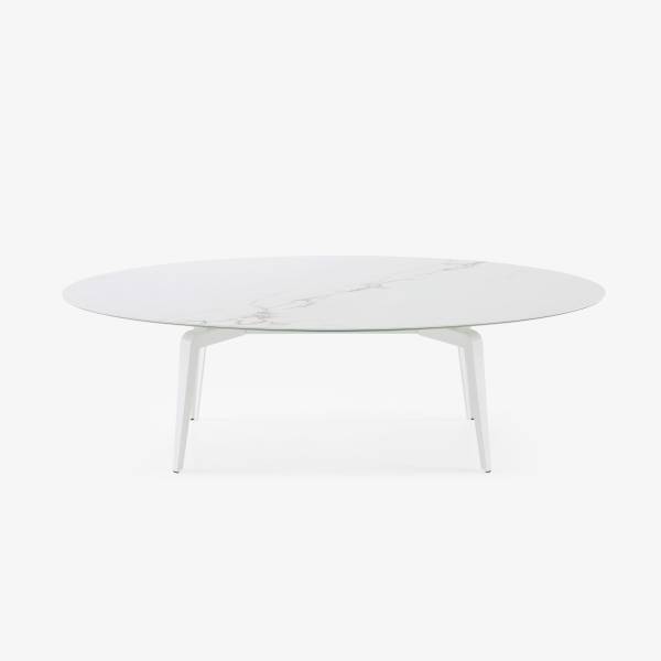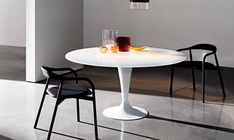 Les bords arrondis de la table de salle à manger ovale créent une visibilité de tous les convives pour un repas tout en harmonie. Personnalisez votre table en choisissant un plateau en bois ou en céramique avec le modèle FLÛTE de la marque Sovet. Le piètement central tulipe est également disponible dans différents coloris.