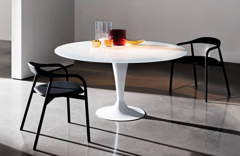 Vous souhaitez décorer votre salle à manger d'une très belle table ovale avec pied tulipe sur Nîmes dans le Gard, Showroom443 vous propose de découvrir la table Flûte de la marque SOVET. Cette table ovale avec pied tulipe apporte de la légèreté dans votre pièce. Vous pouvez l’harmoniser avec des chaises bridges assorties comme sur la photo.